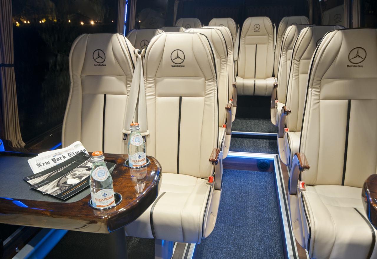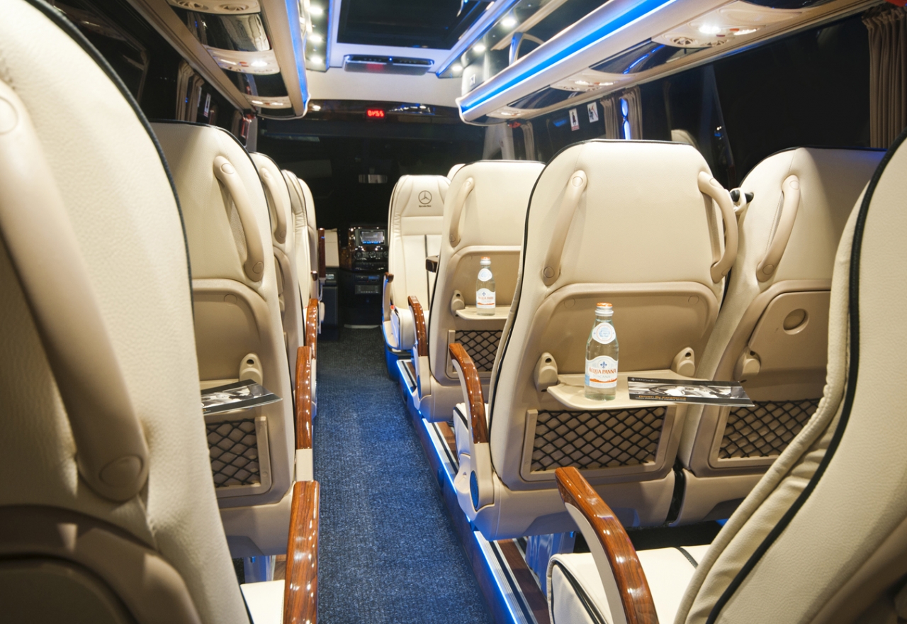 - 9, 13, 16, 19 and 30 luxury seater Mercedes coaches